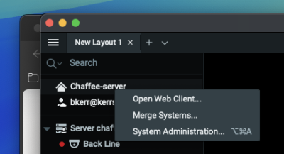 Right click on Chaffee-Server in the DW window and select System Administration