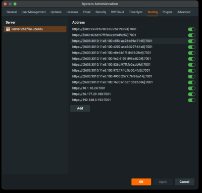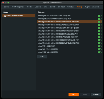 Note: this is going to give you https://[2603:3010:11e5:100:c55b:aa92:c69e:7145]:7001 because that is what is in the DW Routing window.