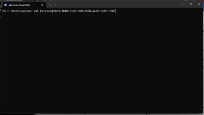 ssh kerrsur@2603:3010:11e5:100:c55b:aa92:c69e:7145